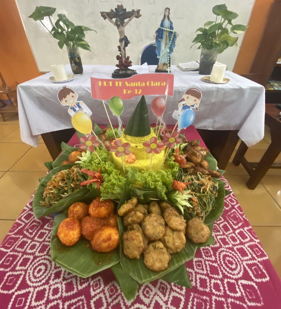 Dalam rangka memperingati HUT yang ke-32, TK Strada Santa Clara melaksanakan ibadat bersama dan dilanjutkan dengan acara potong tumpeng sebagai ucapan syukur.